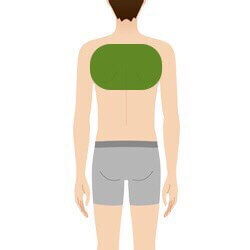 背中の上側は、背中の中心の位置より、うなじの付近までが脱毛施術の対象箇所となります。